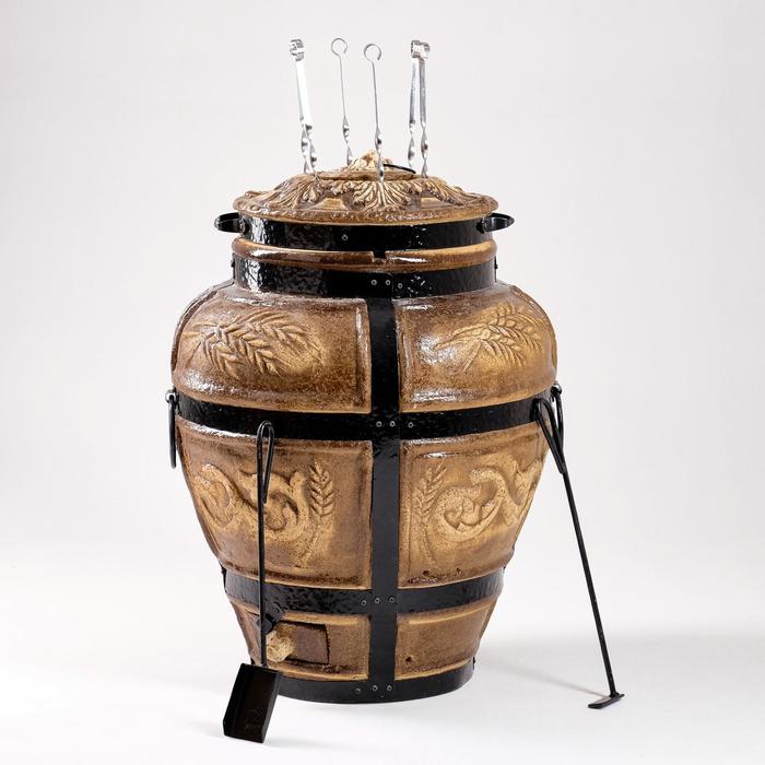 Тандыр "Барельеф-Колос" у народов Средней Азии, Кавказа — глиняный очаг, жаровня, печь для приготовления пищи. Тандыры бывают самыми разнообразными по форме и по назначению: в одних пекут хлеб, в других запекают мясо, овощи. Они бывают стационарными — как вырытыми в земле, так и сложенными из огнеупорной глины в форме бочонка, а бывают небольшими, переносными, для использования в домашних условиях.