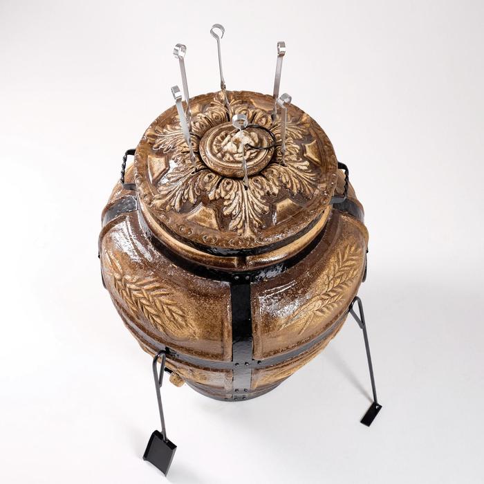 Тандыры изготавливаются гончарными мастерами. Каждое изделие уникально и эксклюзивно. Качество таких приборов проверяется вручную. Каждый сосуд для тандыра прогревается последовательно до 1200°C. Поверх сосуда устанавливается обод с элементами ручной ковки.