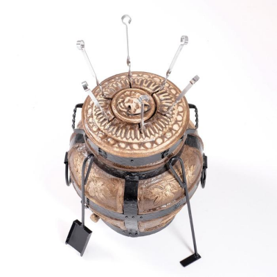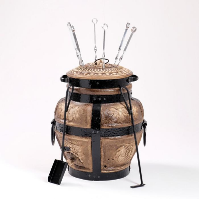 Тандыры изготавливаются гончарными мастерами. Каждое изделие уникально и эксклюзивно. Качество таких приборов проверяется вручную. Каждый сосуд для тандыра прогревается последовательно до 1200°C. Поверх сосуда устанавливается обод с элементами ручной ковки.