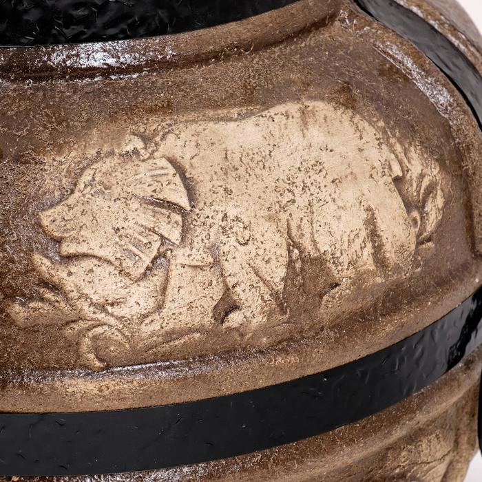 Тандыр "Барельеф-Медведь" позволяет готовить пищу за счёт мощной теплоотдачи керамических стен и дна изделия. Шашлык в тандыре можно приготовить всего за 15 минут. Это рекордно быстрое время в сравнении с мангальным способом приготовления. Для безопасного использования тандыр заключён в стальную окантовку с элементами ковки, поэтому он не требует предварительного "закаливания".