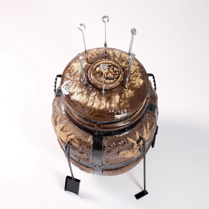 Тандыры изготавливаются гончарными мастерами. Каждое изделие уникально и эксклюзивно. Качество таких приборов проверяется вручную. Каждый сосуд для тандыра прогревается последовательно до 1200°C. Поверх сосуда устанавливается обод с элементами ручной ковки.