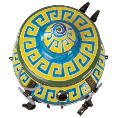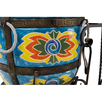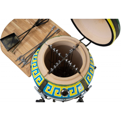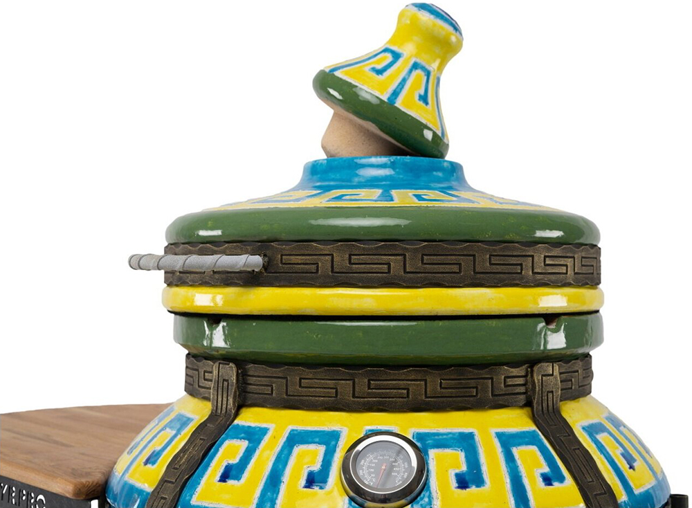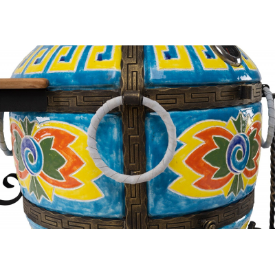 Нарядный тандыр "ЭКОтандыр-Эллада" выделяется узнаваемым древнегреческим узором меандр, который художники-керамисты нарисовали на крышке и чуть ниже горловины. Яркие цветы на боках тандыра добавляют ощущения праздника. В любую погоду как нельзя кстати будут запечённые блюда из разных сортов мяса, лепёшки, самса, овощи и грибы. Оригинальный вкус и аромат им придаст приготовление в эксклюзивном тандыре "ЭКОтандыр-Эллада" с его стенками толщиной 8 см, которые отлично сохраняют жар и равномерно его распределяют. Именно в нём Вы запечёте сытные и красивые блюда, которые восхитят Ваших гостей идеальным балансом вкуса, сочности и аромата.