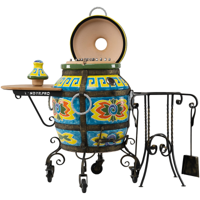 Тандыр покрыт глянцевой глазурью с орнаментом.