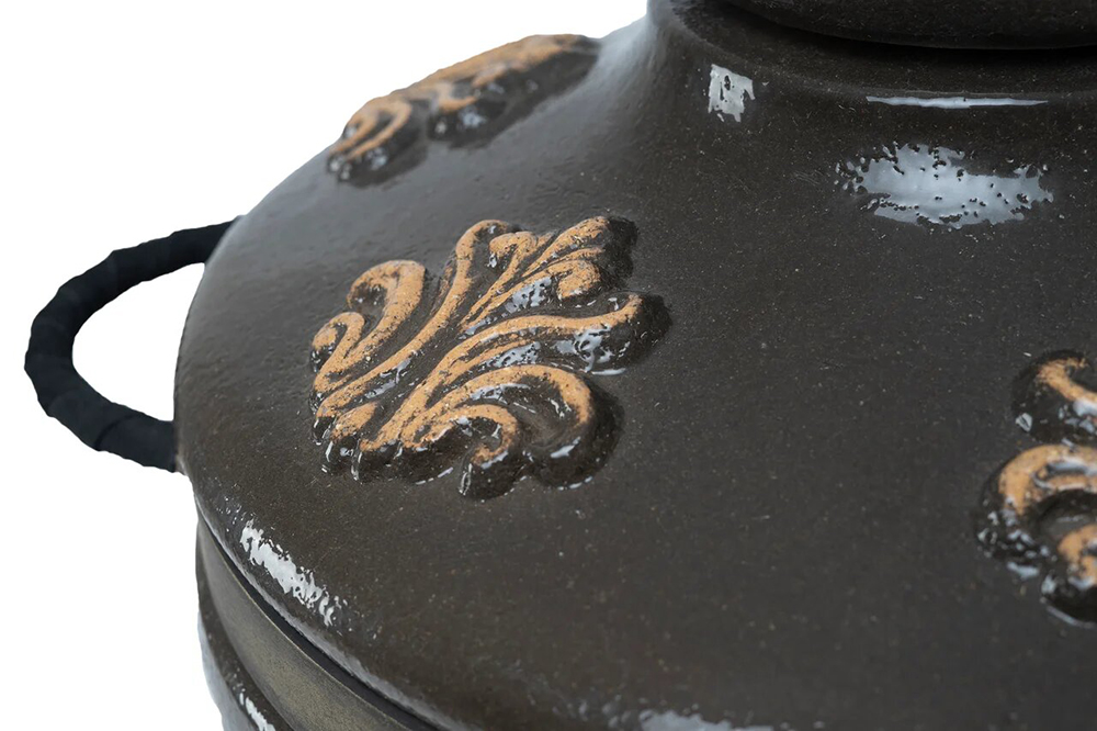 Тандыр покрыт глянцевой глазурью с орнаментом.