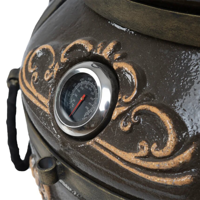 Тандыр "ЭКОтандыр-Гранд"! Можно было бы дальше и не продолжать. Всё самое лучшее, что пожелали требовательные гурманы, компания "ЭКОтандыр" воплотила в тандыре "Гранд". Сам корпус тандыра сделан в классической форме кувшина, при этом горловина тандыра "ЭКОтандыр-Гранд" достигает внушительных 30 см. В толстостенном корпусе тандыра установлен большой наглядный термометр, и у хозяев этого тандыра никогда не будет сомнений относительно правильной температуры приготовления многочисленных блюд. Четыре ручки на корпусе для переноски тандыра тоже подчеркивают уверенность и основательность тандыра "ЭКОтандыр-Гранд". В комплекте 16 шампуров со специальными зажимами, для того чтобы обладатель тандыра всегда имел возможность готовить много и вкусно. Большой тандыр "ЭКОтандыр-Гранд" и этим всё сказано.