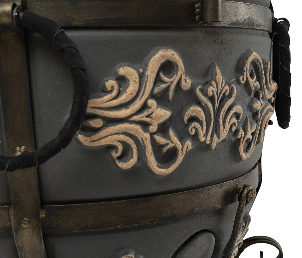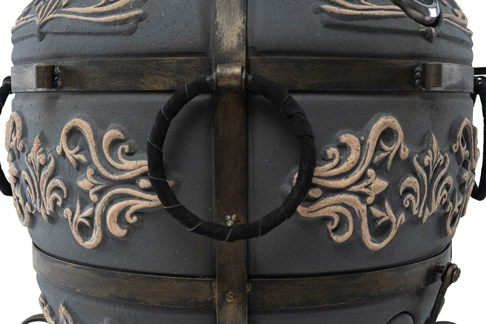 Тандыр покрыт глянцевой глазурью с орнаментом.