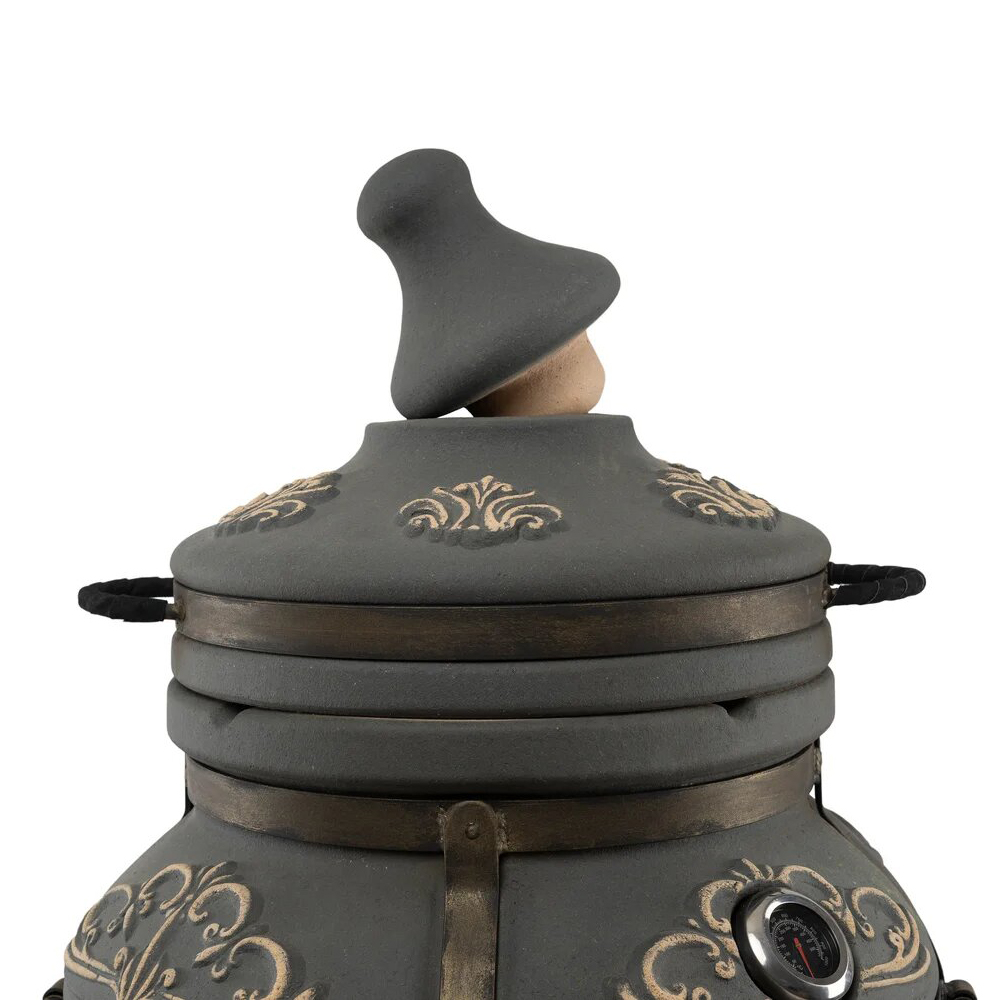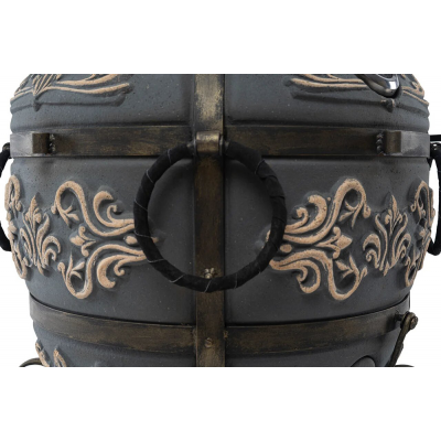 Тандыр "ЭКОтандыр-Гранд"! Можно было бы дальше и не продолжать. Всё самое лучшее, что пожелали требовательные гурманы, компания "ЭКОтандыр" воплотила в тандыре "Гранд". Сам корпус тандыра сделан в классической форме кувшина, при этом горловина тандыра "ЭКОтандыр-Гранд" достигает внушительных 30 см. В толстостенном корпусе тандыра установлен большой наглядный термометр, и у хозяев этого тандыра никогда не будет сомнений относительно правильной температуры приготовления многочисленных блюд. Четыре ручки на корпусе для переноски тандыра тоже подчеркивают уверенность и основательность тандыра "ЭКОтандыр-Гранд". В комплекте 16 шампуров со специальными зажимами, для того чтобы обладатель тандыра всегда имел возможность готовить много и вкусно. Большой тандыр "ЭКОтандыр-Гранд" и этим всё сказано.