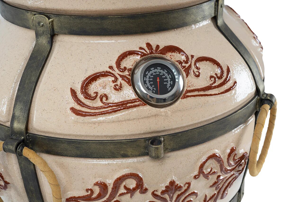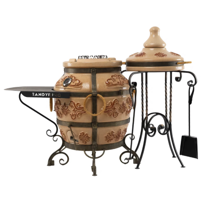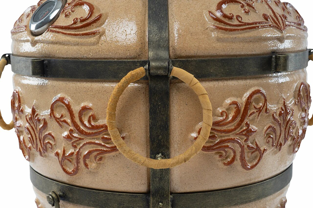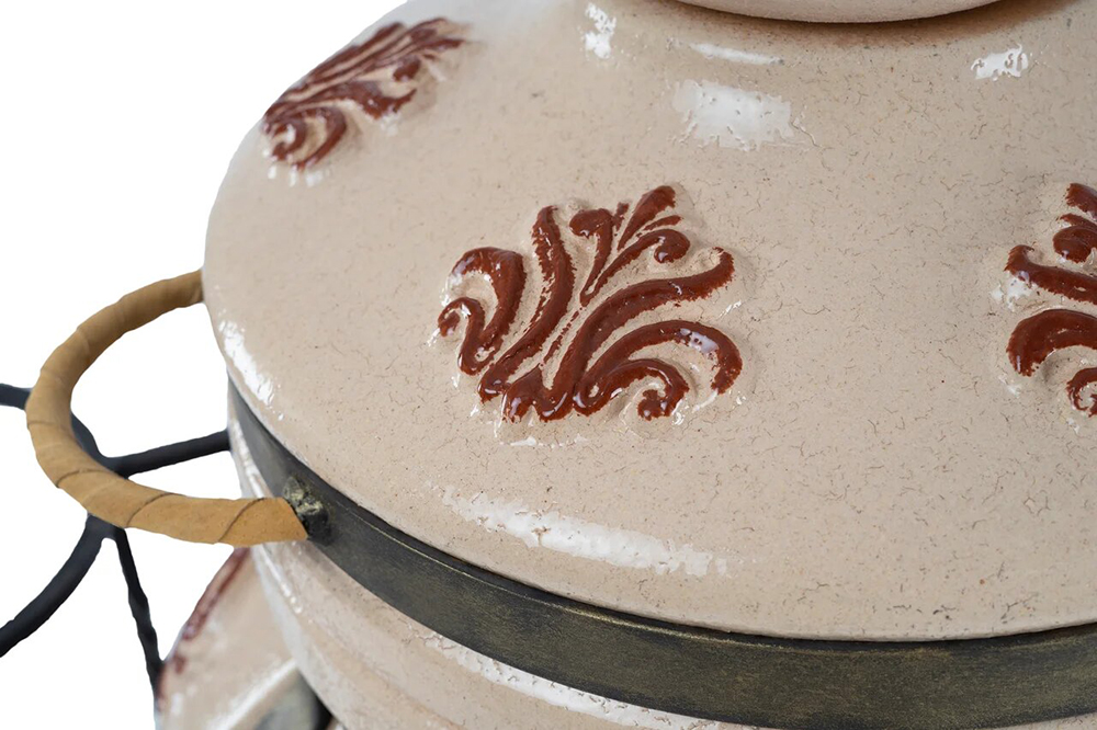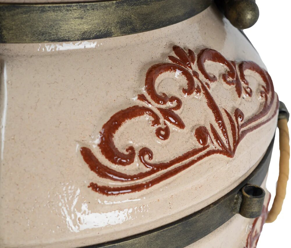 Тандыр покрыт глянцевой глазурью с орнаментом.