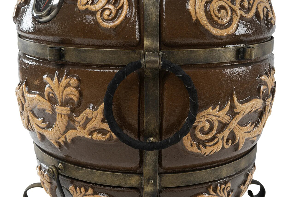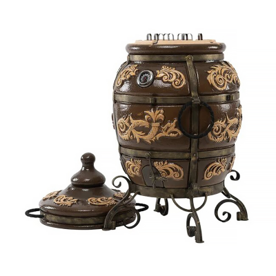 Тандыр покрыт глянцевой глазурью с орнаментом.