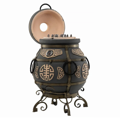 Объёмный, удобный, красивый! Тандыр "ЭКОтандыр-Шар" — это одна из удачных моделей тандыров, так как распределение тепла от стенок внутри происходит более равномерно. Механизм откидывания большой крышки уже отработанная и оправданная опция, широкая горловина для любых экспериментов с приготовлениями блюд. В качестве узоров используется стилистически выполненный иероглиф богатства, успеха (удачи) или узор двух рыб символ счастья, успеха, изобилия. В общем тандыр — оберег, не иначе. А как он готовит... Это надо попробовать!