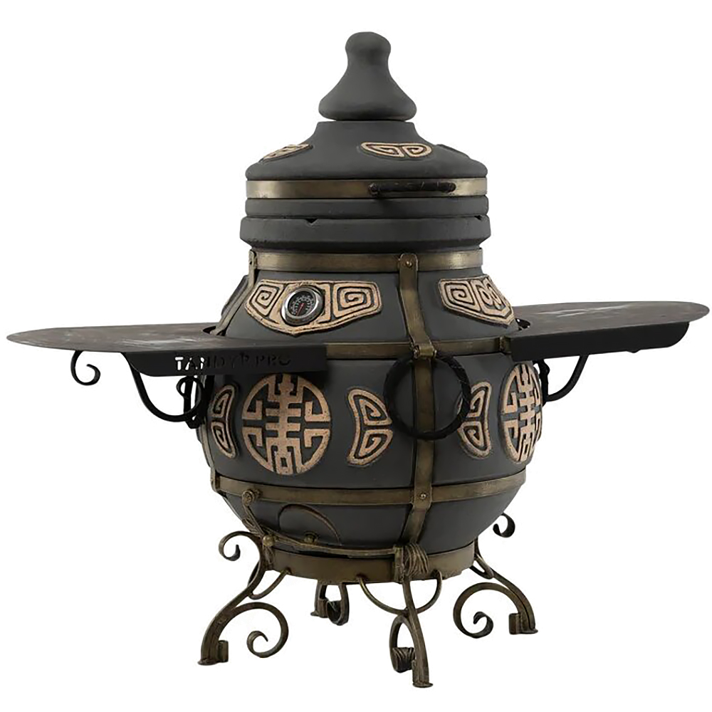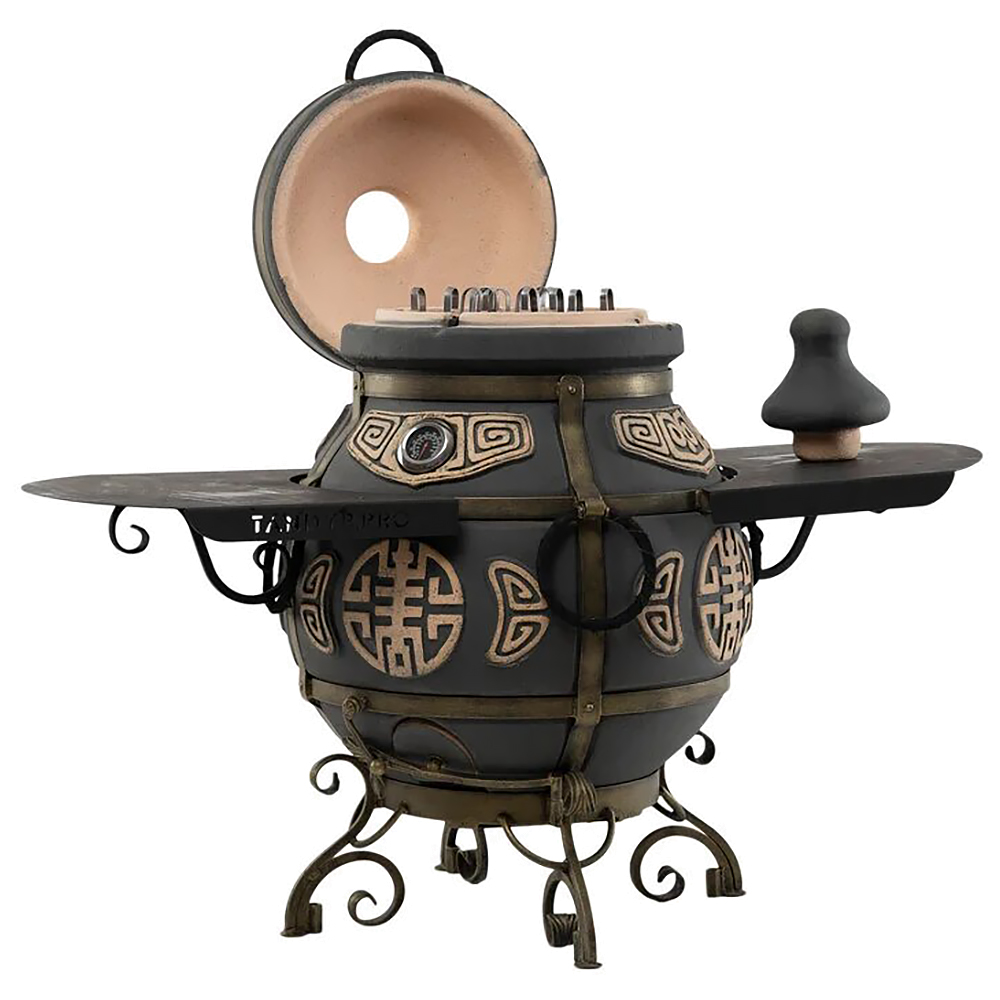 Объёмный, удобный, красивый! Тандыр "ЭКОтандыр-Шар" — это одна из удачных моделей тандыров, так как распределение тепла от стенок внутри происходит более равномерно. Механизм откидывания большой крышки уже отработанная и оправданная опция, широкая горловина для любых экспериментов с приготовлениями блюд. В качестве узоров используется стилистически выполненный иероглиф богатства, успеха (удачи) или узор двух рыб символ счастья, успеха, изобилия. В общем тандыр — оберег, не иначе. А как он готовит... Это надо попробовать!