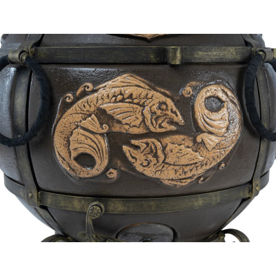 Объёмный, удобный, красивый! Тандыр "ЭКОтандыр-Шар" — это одна из удачных моделей тандыров, так как распределение тепла от стенок внутри происходит более равномерно. Механизм откидывания большой крышки уже отработанная и оправданная опция, широкая горловина для любых экспериментов с приготовлениями блюд. В качестве узоров используется стилистически выполненный иероглиф богатства, успеха (удачи) или узор двух рыб символ счастья, успеха, изобилия. В общем тандыр — оберег, не иначе. А как он готовит... Это надо попробовать!