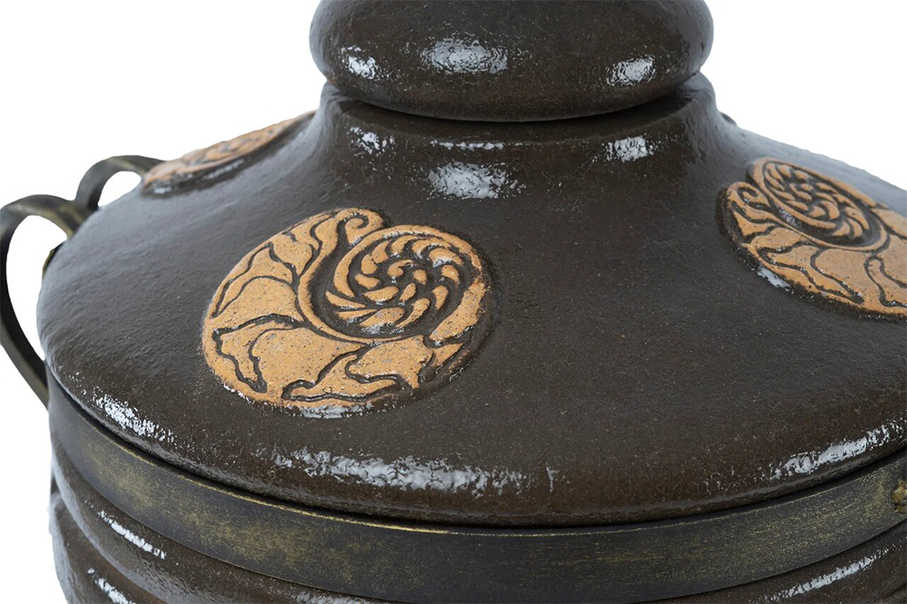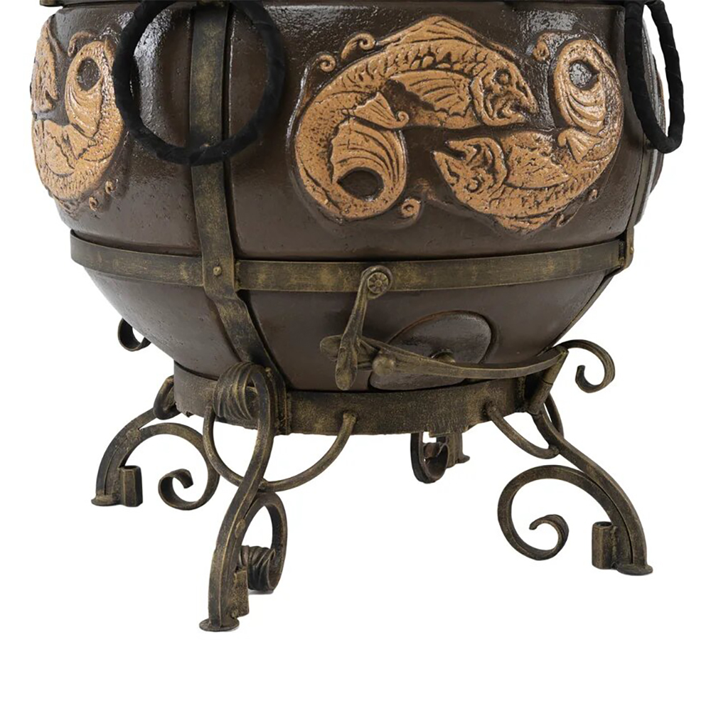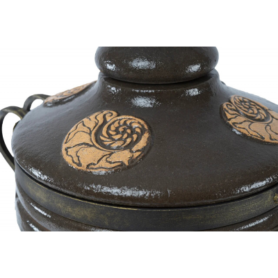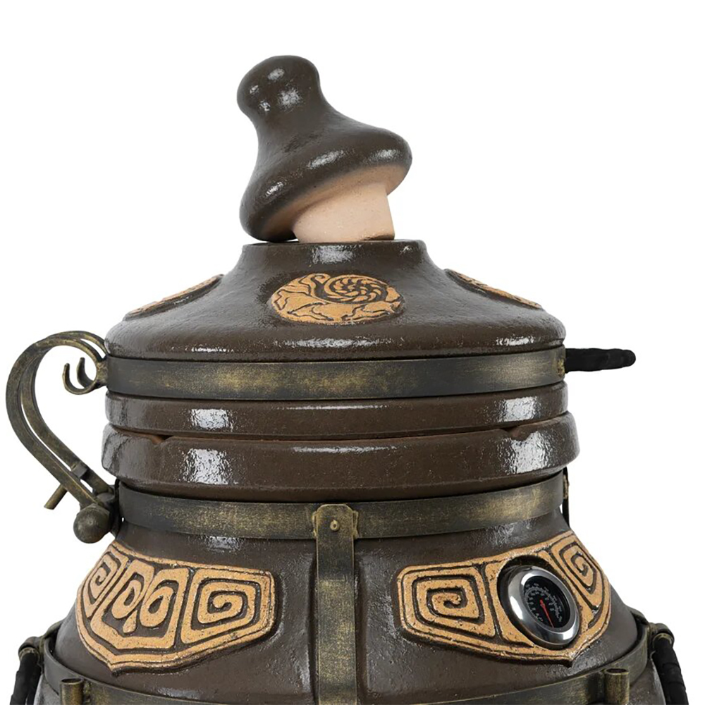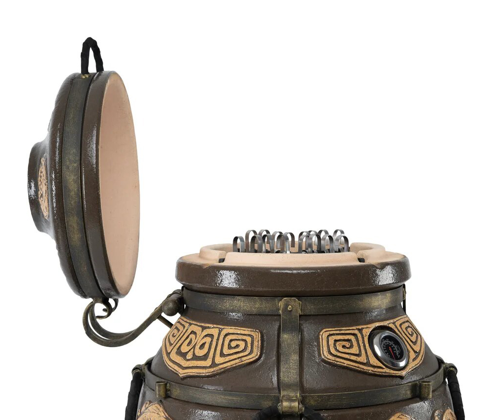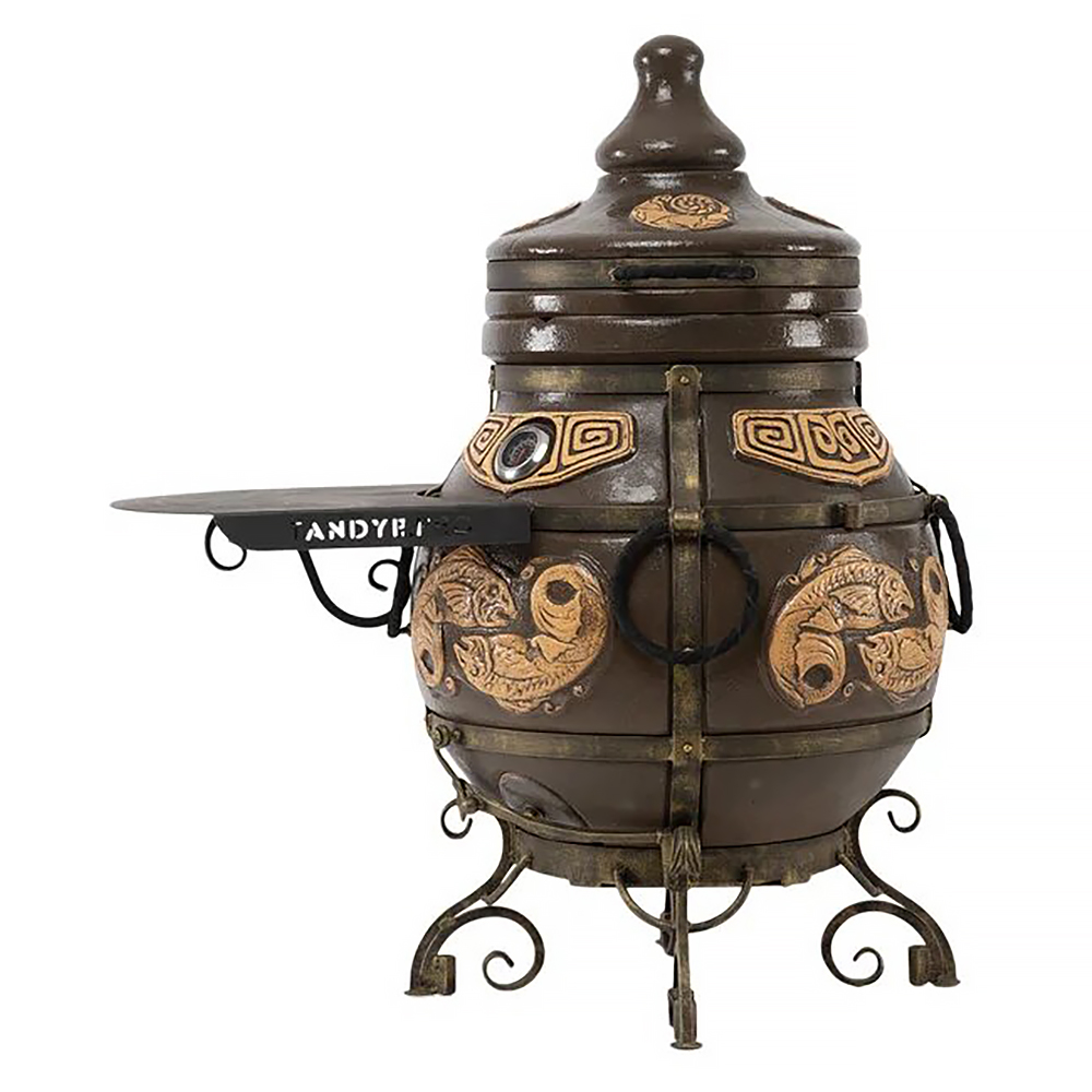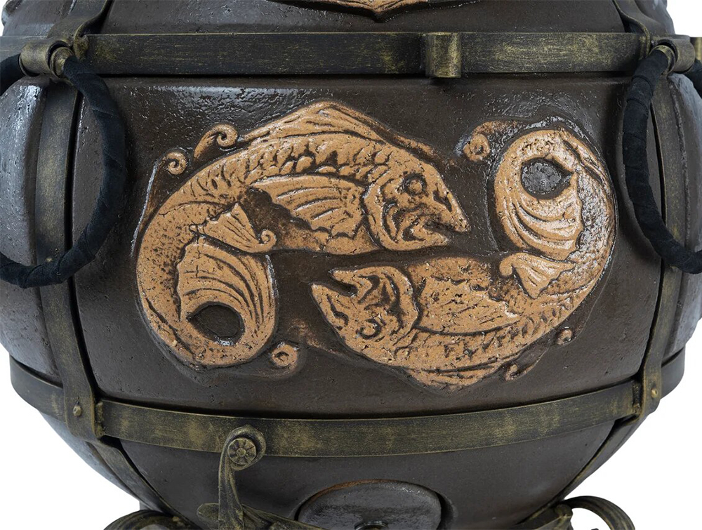 Объёмный, удобный, красивый! Тандыр "ЭКОтандыр-Шар" — это одна из удачных моделей тандыров, так как распределение тепла от стенок внутри происходит более равномерно. Механизм откидывания большой крышки уже отработанная и оправданная опция, широкая горловина для любых экспериментов с приготовлениями блюд. В качестве узоров используется стилистически выполненный иероглиф богатства, успеха (удачи) или узор двух рыб символ счастья, успеха, изобилия. В общем тандыр — оберег, не иначе. А как он готовит... Это надо попробовать!