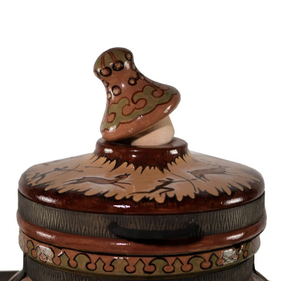 Тандыр покрыт глянцевой глазурью с орнаментом.