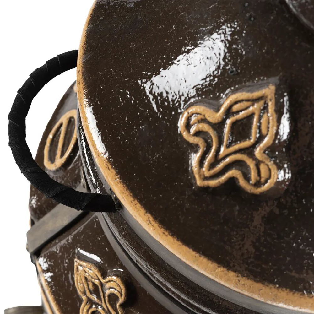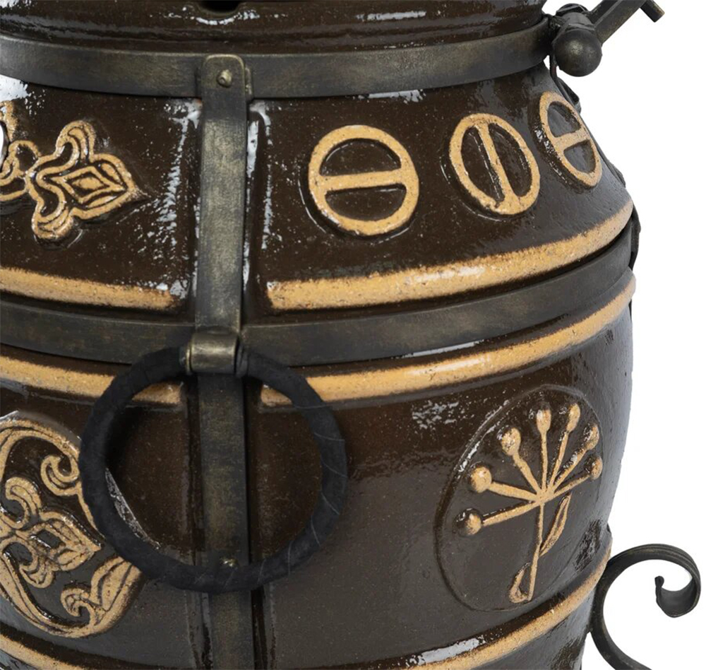 Тандыр покрыт глянцевой глазурью с орнаментом.