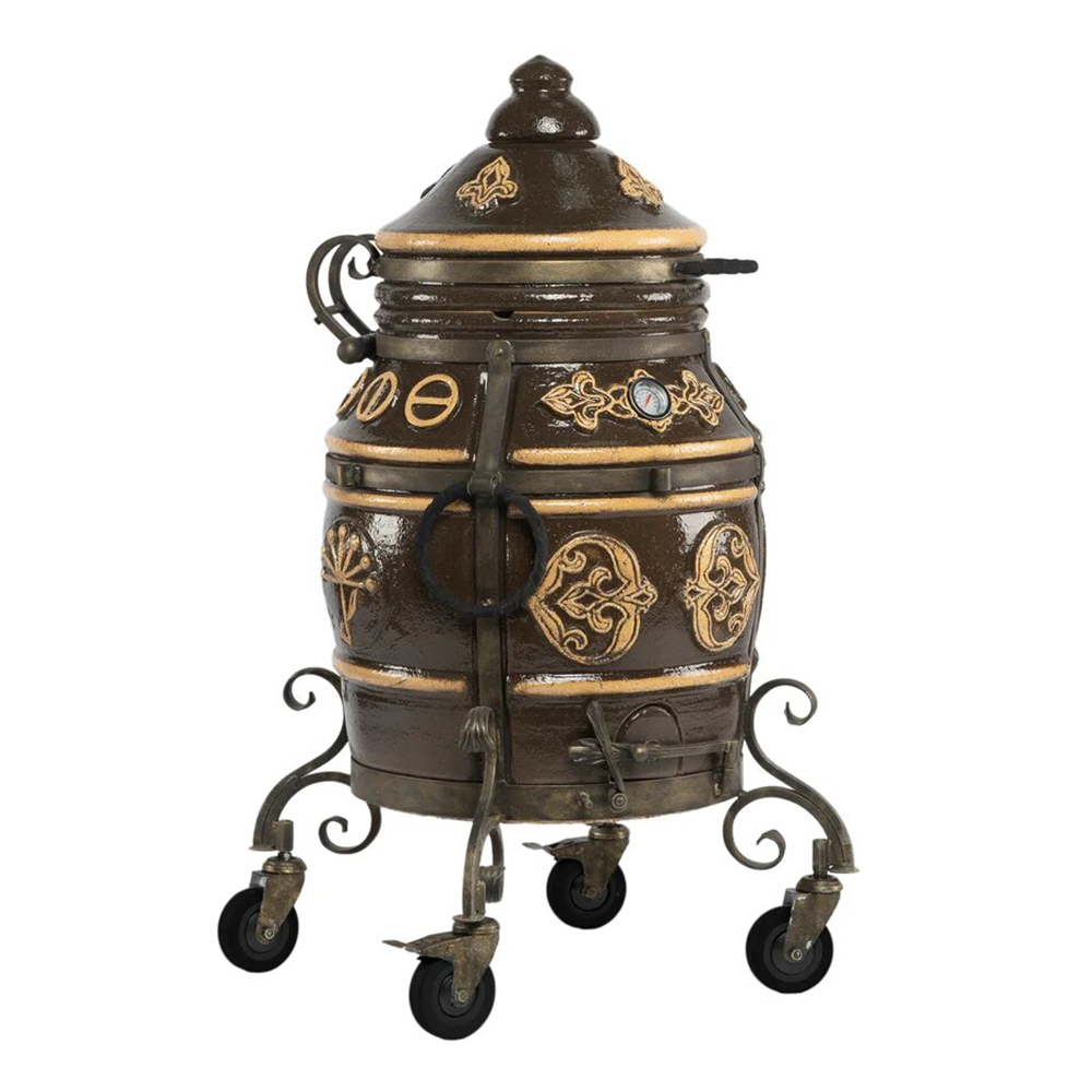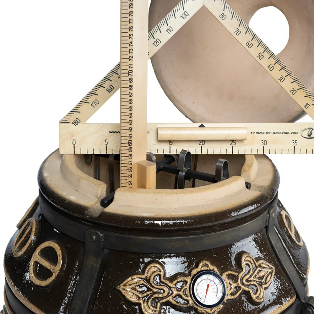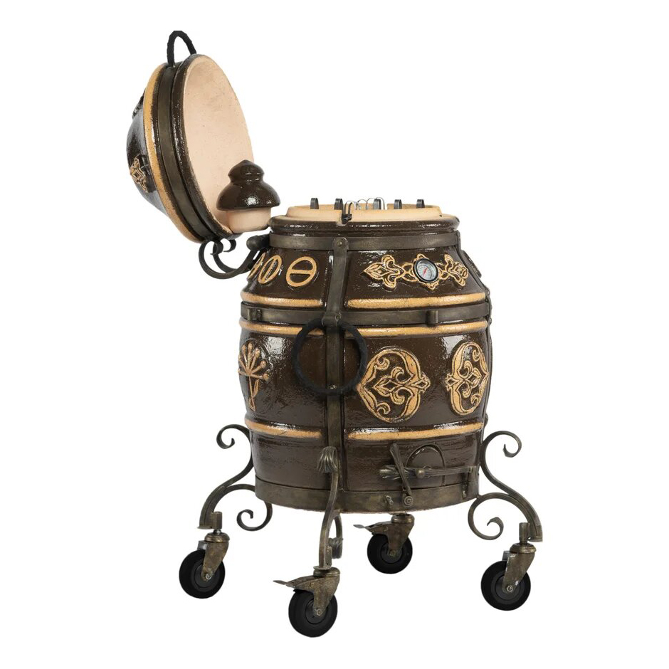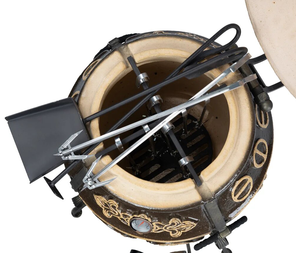 тандыр, шампуры, кочерга, совок, колосник, приспособление для подвешивания шампуров, термометр, колёса - 4 шт.