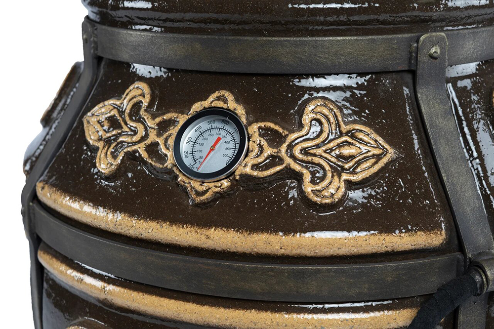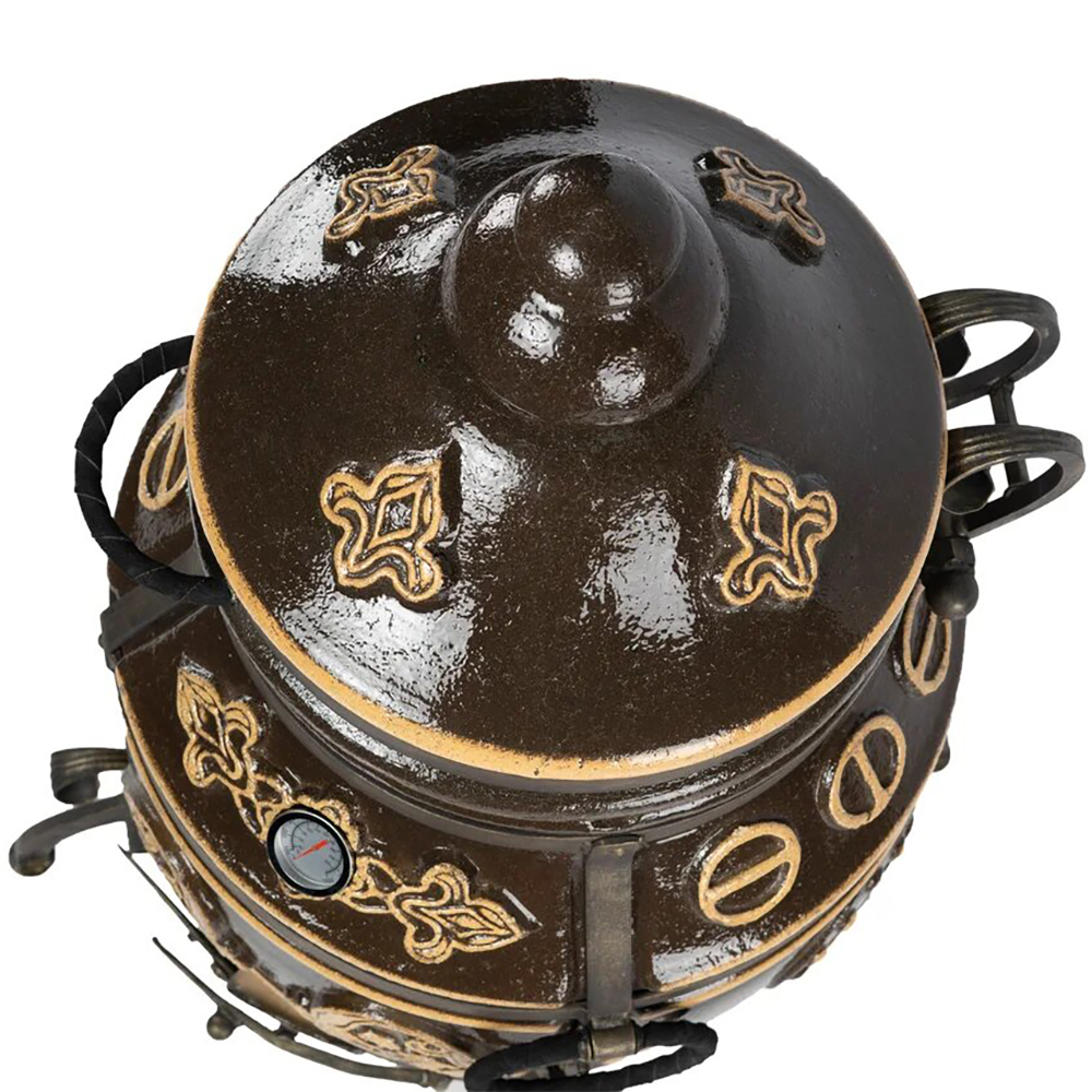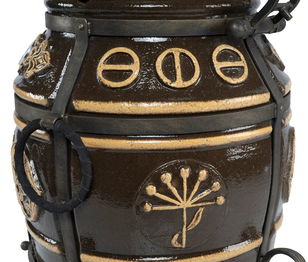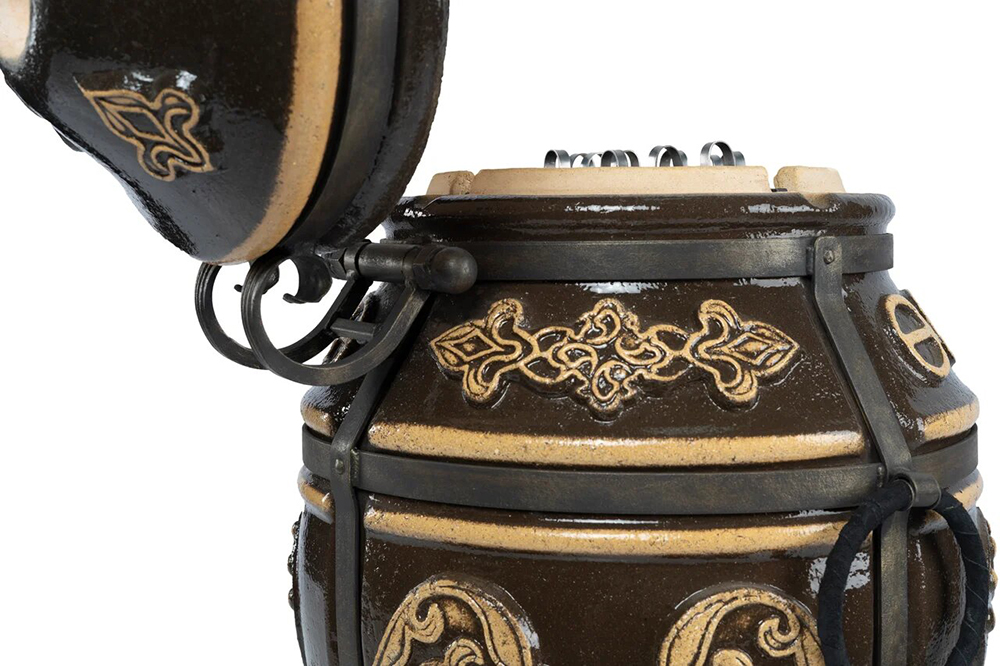 Тандыр покрыт глянцевой глазурью с орнаментом.