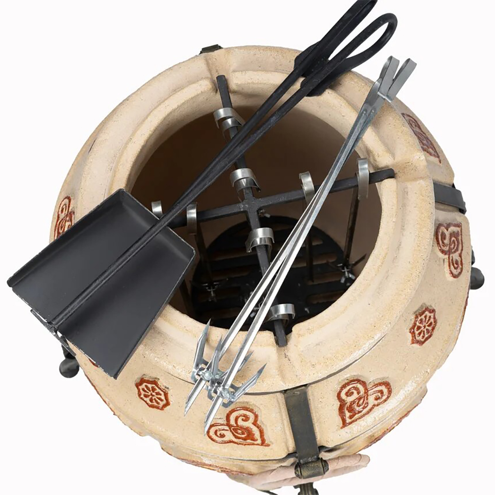 тандыр, шампуры, кочерга, совок, колосник, приспособление для подвешивания шампуров, термометр