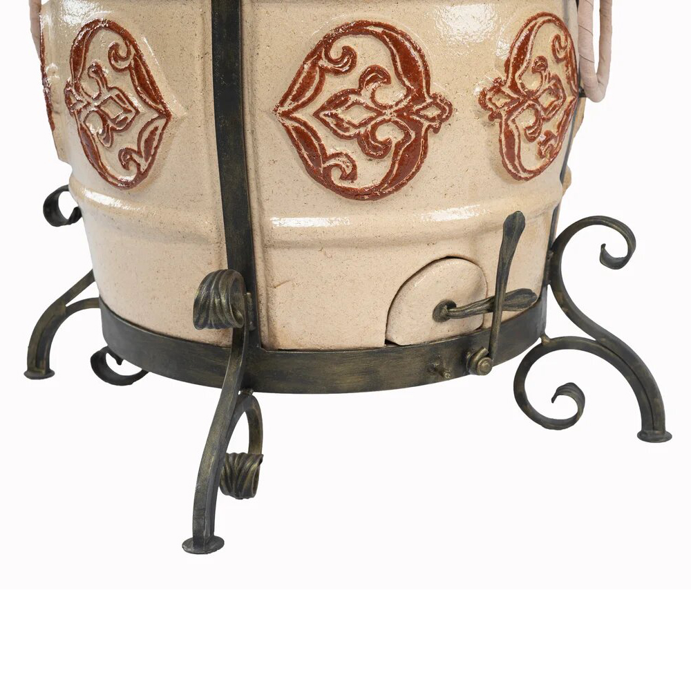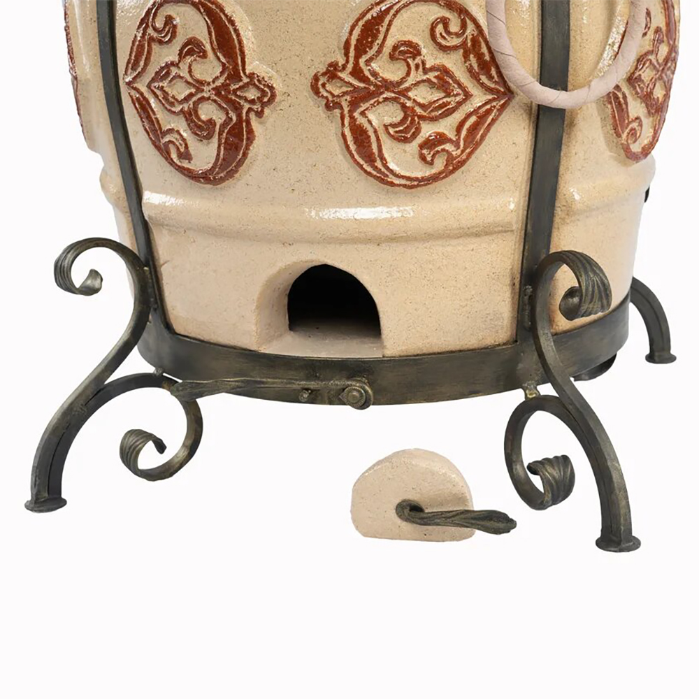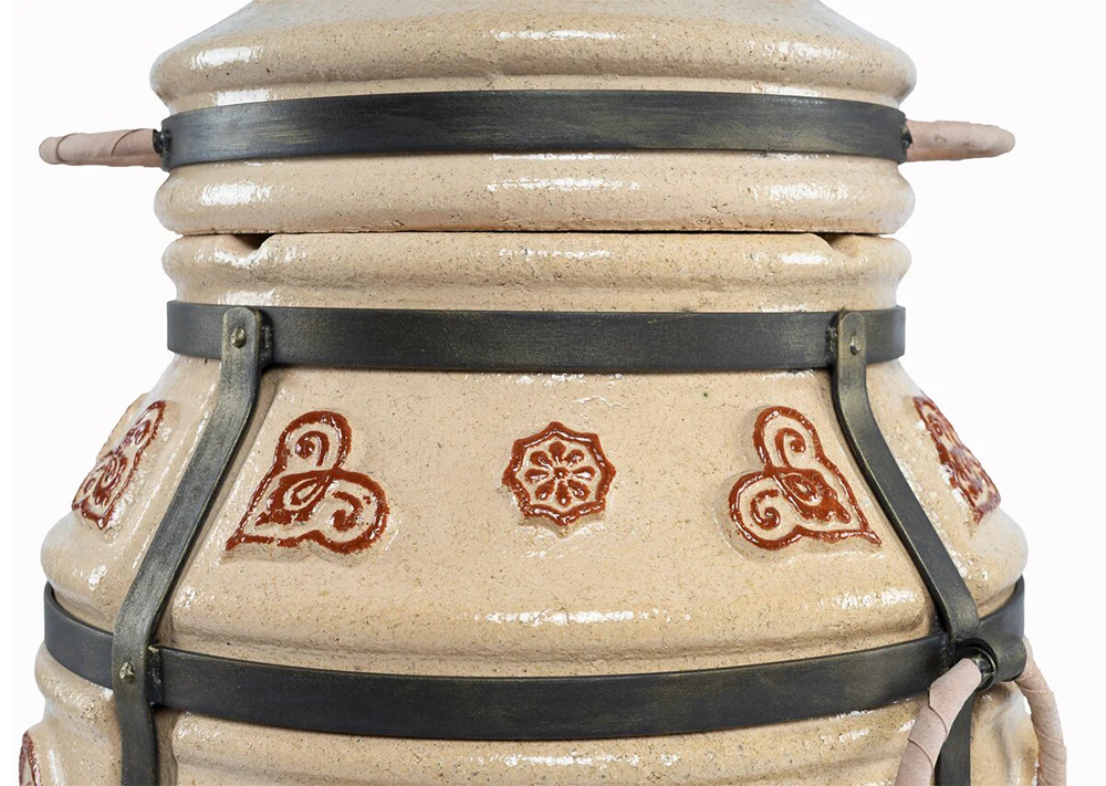 Тандыр покрыт глянцевой глазурью с орнаментом.